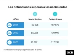 La población de Cuba cayó drásticamente y continúa la tendencia al decrecimiento, según un reciente informe publicado por la Oficina Nacional de Estadística e Información (ONEI), una situación que, señalan expertos, constituye una "catástrofe demográfica".